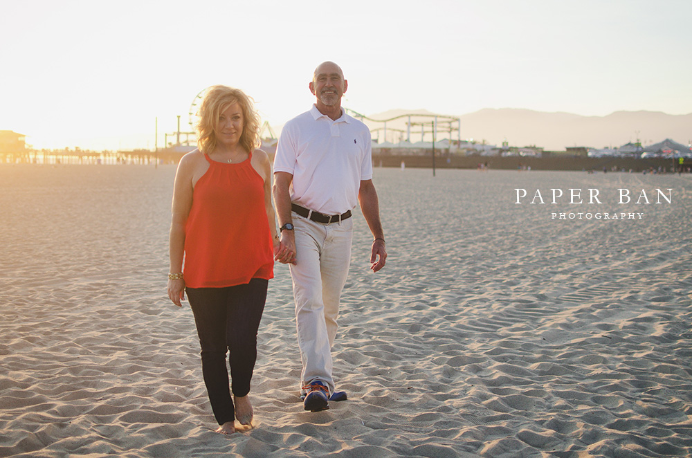 Photographing Jen and Jim for this session was a blast. They were so cute together! Because their wedding would be a beach wedding, they wanted their engagement photos to be on the beach as well. In one of the photos, you can see Shutters on the Beach in the background, which is where they’ll be having their reception on their wedding day. You can see Santa Monica Pier in the distance in some of these images as well, and I absolutely love them!