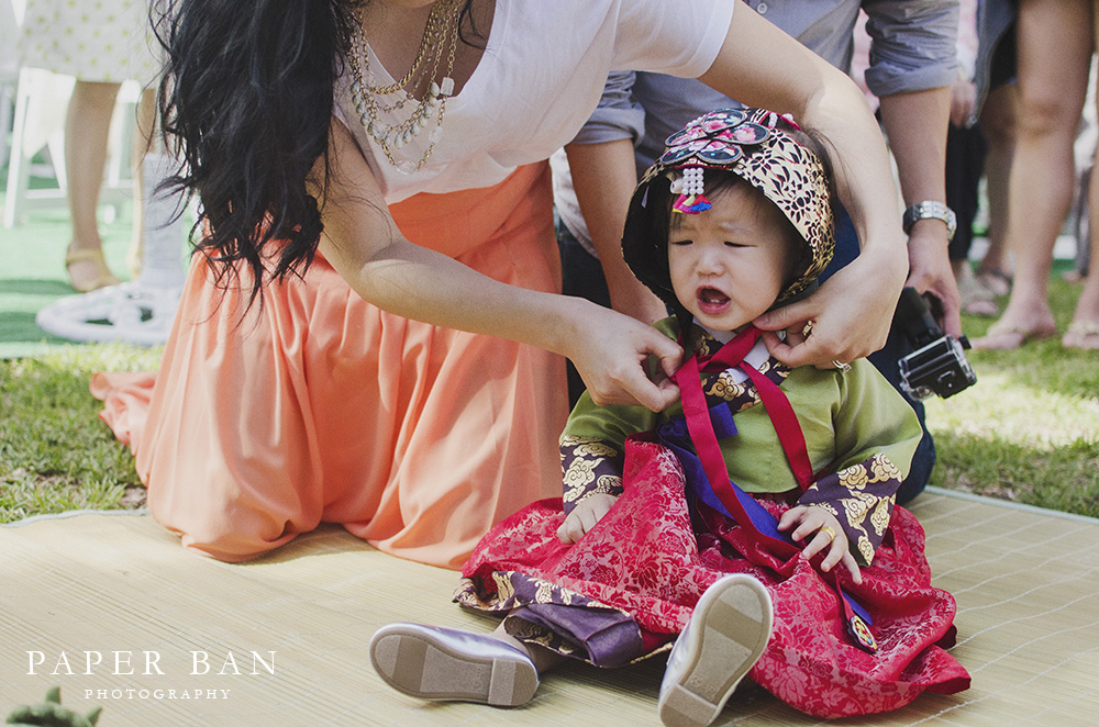 The birthday celebration took place in her backyard that overlooked the Pasadena neighborhood. Perry was dressed in a cute floral outfit as she enjoyed the party, until it was time for business. In the Korean tradition, when a baby turns one, they ‘choose their future’, meaning they are placed on a mat with several objects in front of them, each symbolizing a different career. Perry, now in her adorable traditional Korean dress, crawled towards the ruler.