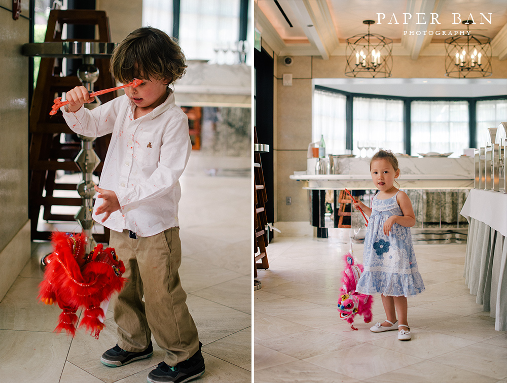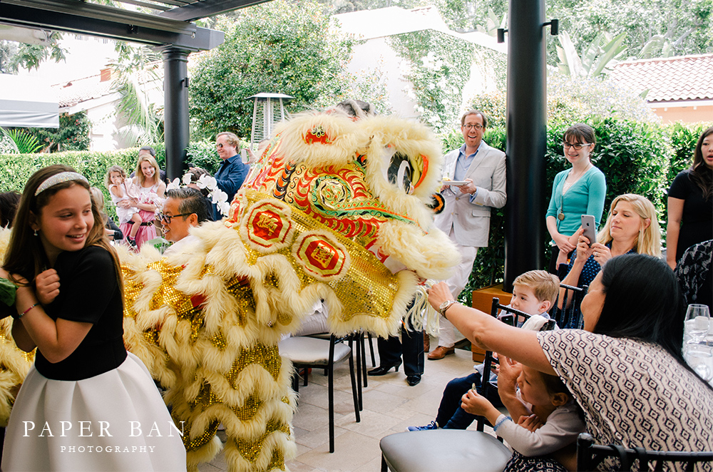 Prior to the event, the family and I quickly walked around the beautifully lush Hotel Bel-Air grounds to photograph some formal family shots. Afterwards, it was all party, haha. Towards the end of the celebration, guests were surprised with a performance by Chinese dragons! You’ll have to read on to get a glimpse of the action!