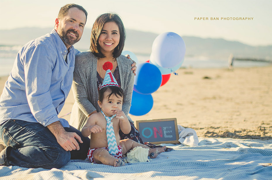 Little Austin, with his big and fluffy cheeks, is turning one this month! As part of his big birthday bash, Paula and Denny wanted a birthday cake-smash session. So during Halloween, before all the houses even opened their doors to trick-or-treaters, we met up at Venice Pier so Austin could wreak havoc on a very delicious cake.