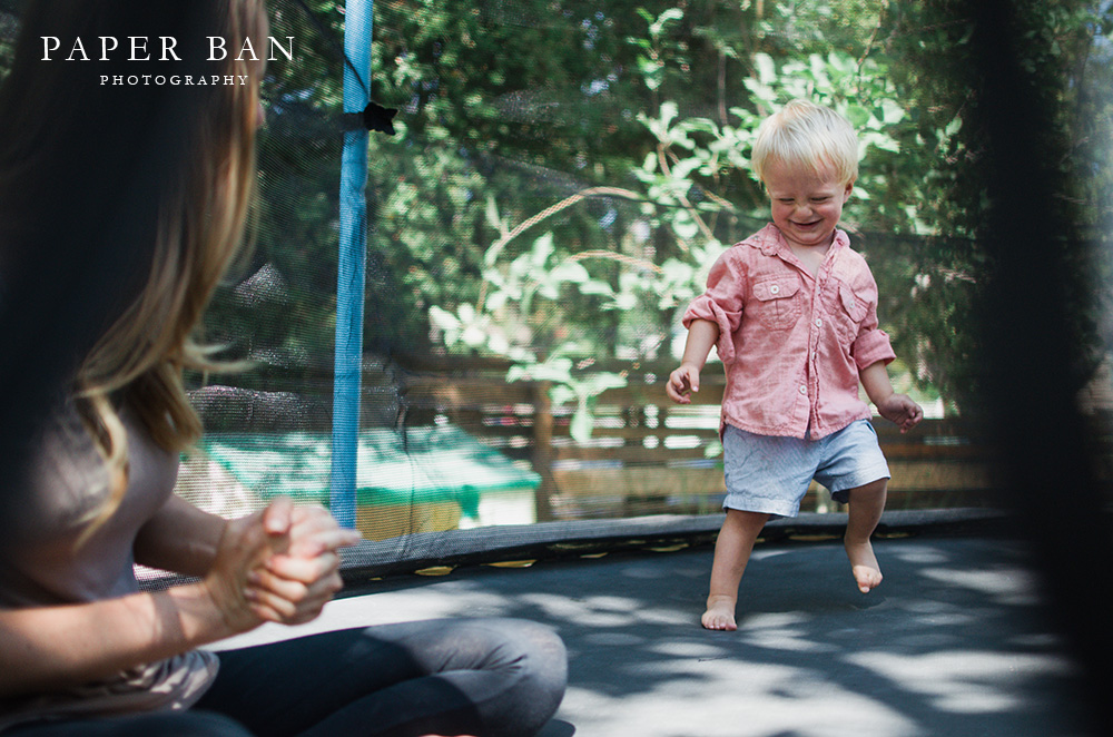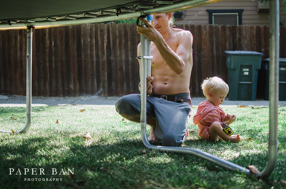 I began photographing this family on an early Sunday morning. The streets were quiet and peaceful, and the Behnken household began to stir, starting with little Sterling. With as much energy that she could muster up, Katherine led him to the backyard, away from his sleeping dad. As the day progressed, everyone enjoyed a fresh breakfast on their front lawn, followed by something they were super excited about – setting up the net for their trampoline! Of course, this was a father-son activity, and Sterling was more than happy to help his dad, Lukas. Soon after, everyone enjoyed the fruits of their labor with some (safe) trampoline fun!