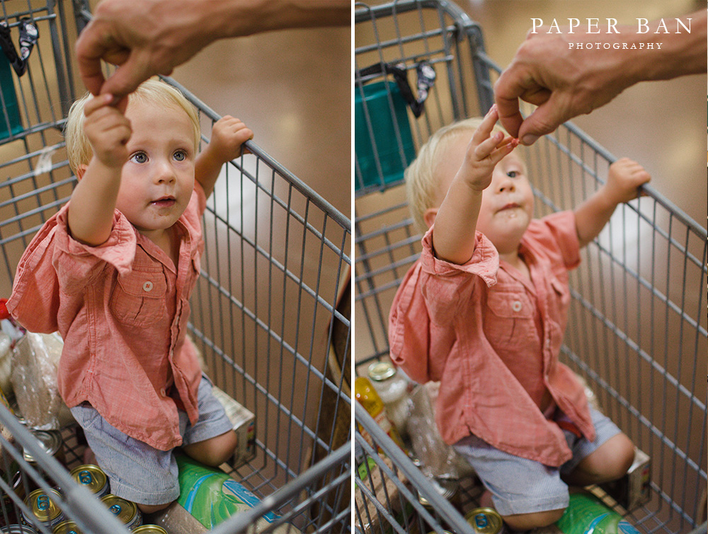 Then, I followed them on a grocery trip where the four things on their ‘to-buy’ list ended in a full cart. Oh, I’m so glad I’m not the only one who does this, haha. As we explored the grocery store, Sterling followed his parent’s footsteps and helped pick out some of his favorite foods to take home.