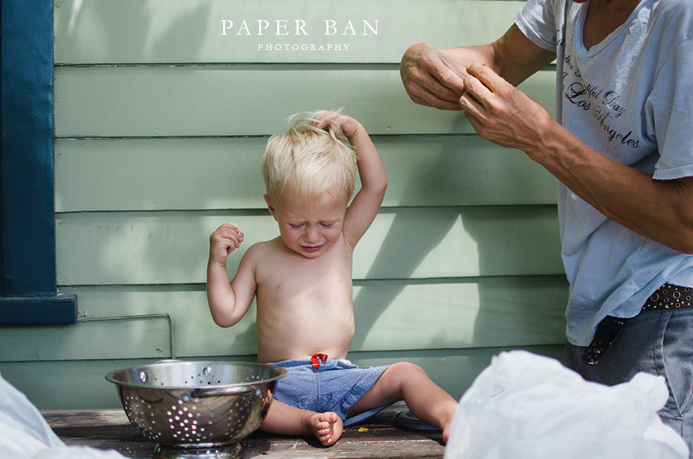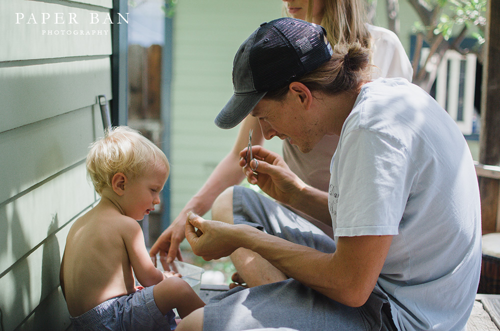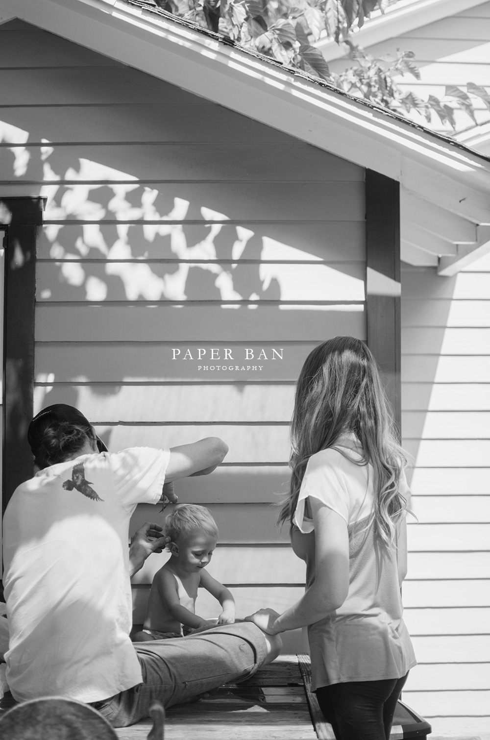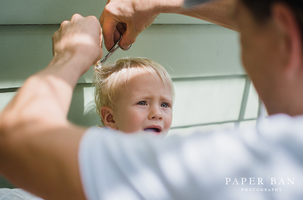Once we head back to their Pasadena home, Lukas asked if I would be interested in photographing them while he cuts Sterling’s hair into a mohawk. Um… YES?! By that time, it was roughly noon, which is normally when Sterling takes his day nap. The energy that he had in the beginning of the day began to falter as Lukas started snip-snipping away Sterling’s precious blond hair in their backyard patio, and Katherine had to keep the little guy entertained in the meanwhile.