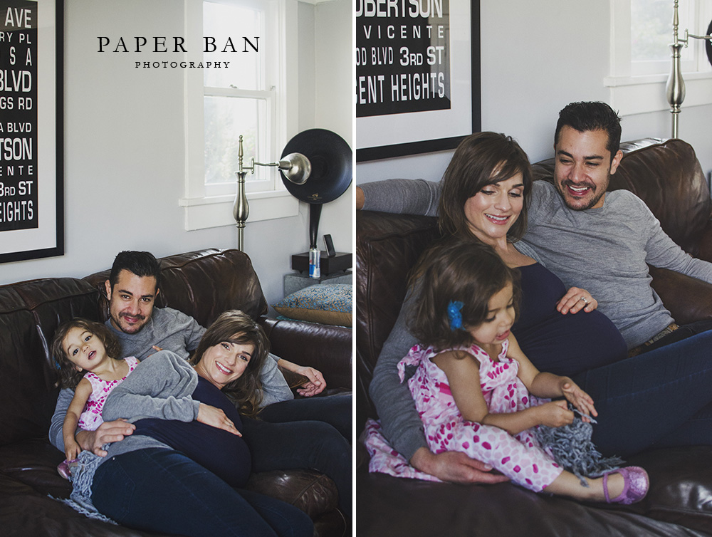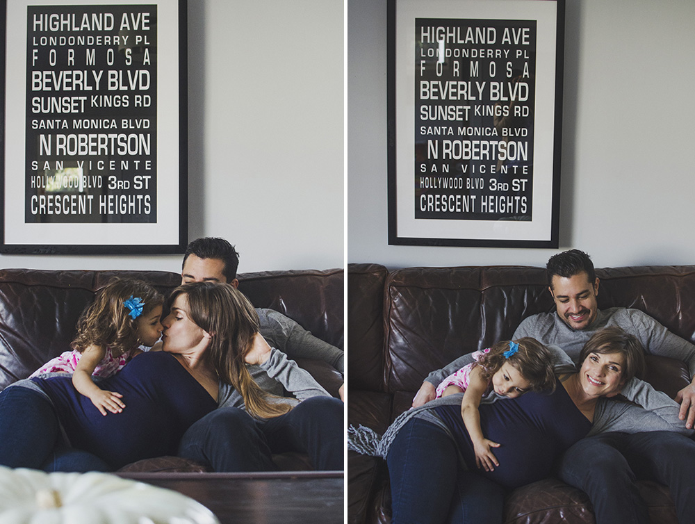 Sam was due any day with her second child, a boy that is to be named Riot. She has never gotten her maternity photos done – for her first child and Riot-, and the clock was ticking to document her pregnancy journey. We had to do something quickly. When I mentioned that it might be a great idea to photograph her in her cozy Eagle Rock home as part of a lifestyle maternity session, she agreed!