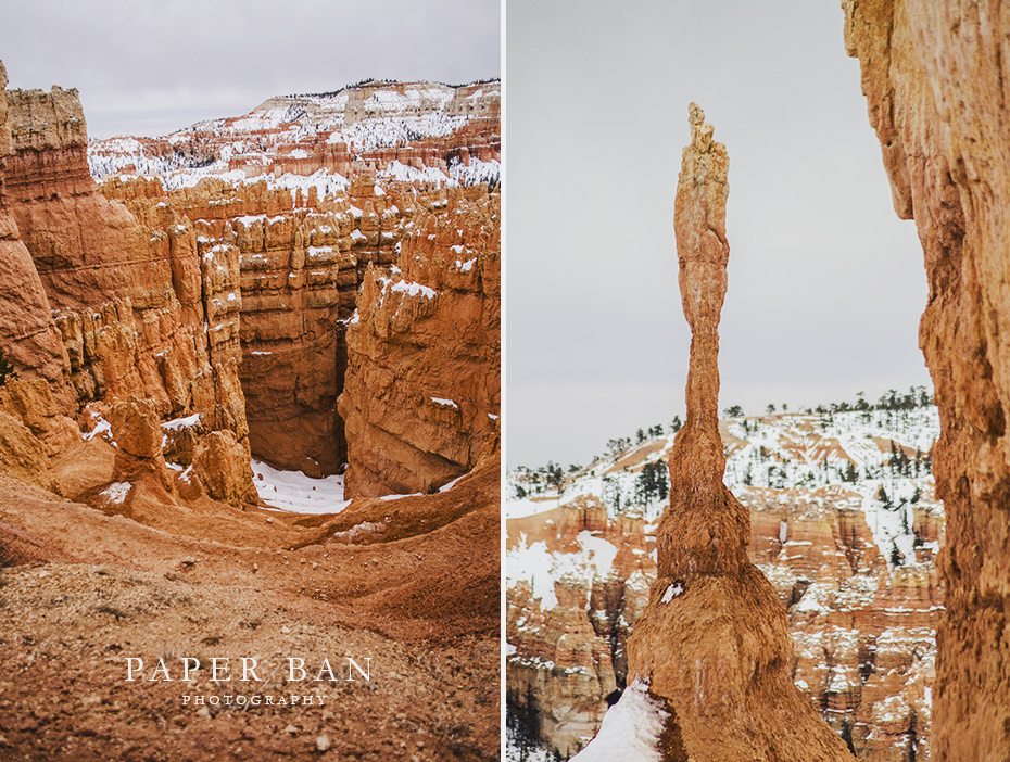 Anyway, we headed to Bryce Canyon National Park – a 3 hour car ride away from Zion. Bryce was completely different than Zion. The canyons were in the form of incredible looking spires and the rocks were so vibrantly red. Sprinkle that with white snow, and you have yourself a wonderful view.