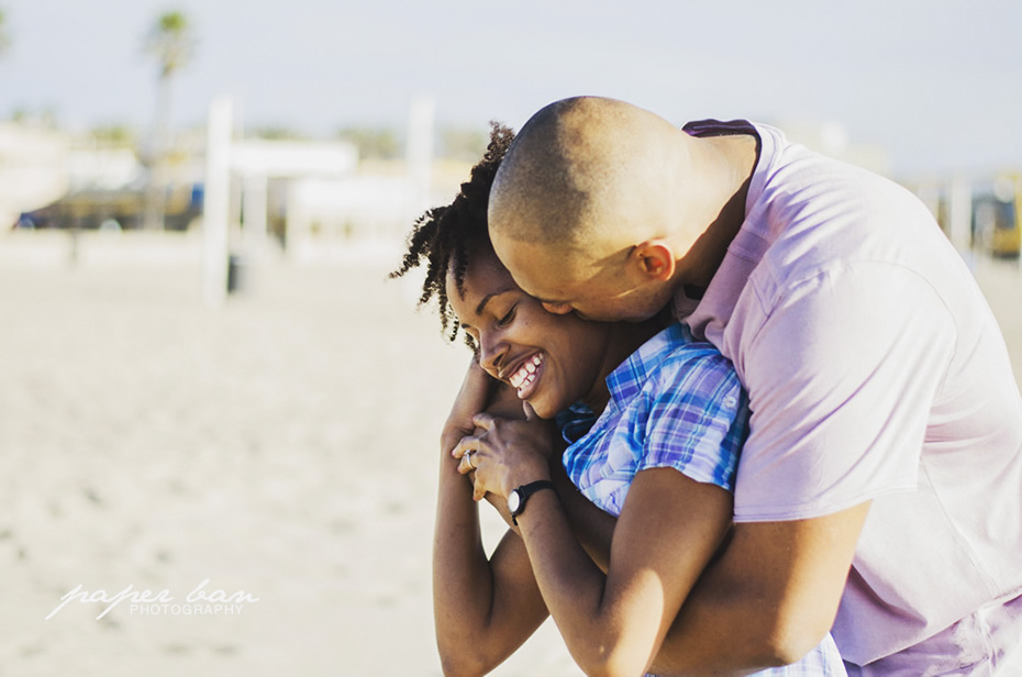 A minute after meeting up with Tynesha and Eddie for an engagement session at Hermosa Beach, I could already feel the chemistry. They bantered constantly and frivolously, which clearly made for great photos! I love going to the beach on weekdays, of all the days. The beaches are quiet and private for the most part, leaving this happily engaged couple to cuddle in their own lovely world. Especially in Los Angeles, where there is an abundance amount of people, it’s amazing how going on a weekday versus a weekend changes the ambient of the beach so drastically!