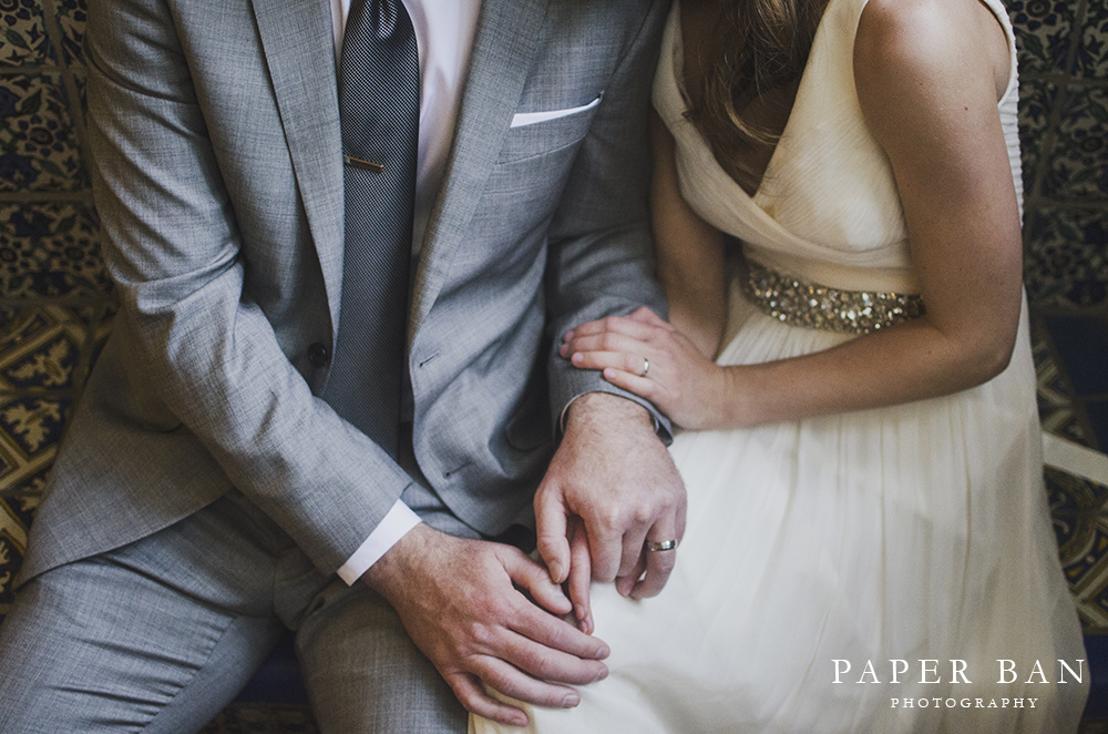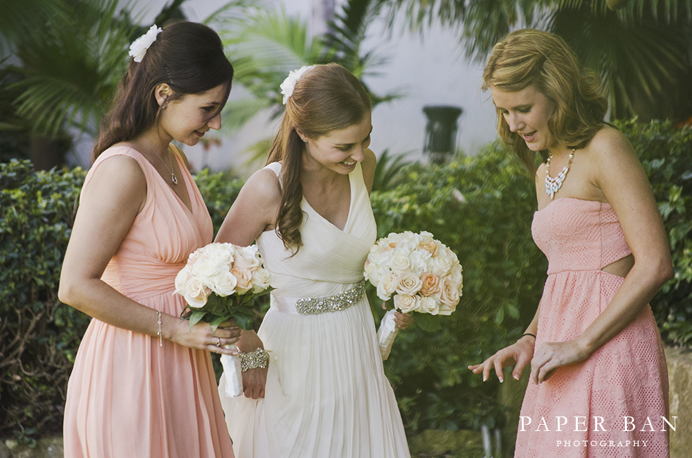 Greg and Katie held their wedding ceremony at the Santa Barbara Courthouse Mural Room, which is a beautiful painted room within an already beautiful courthouse full of arches, mosaics, and colors. With a guest list of only immediate relatives and close friends, the lovely couple was wedded.