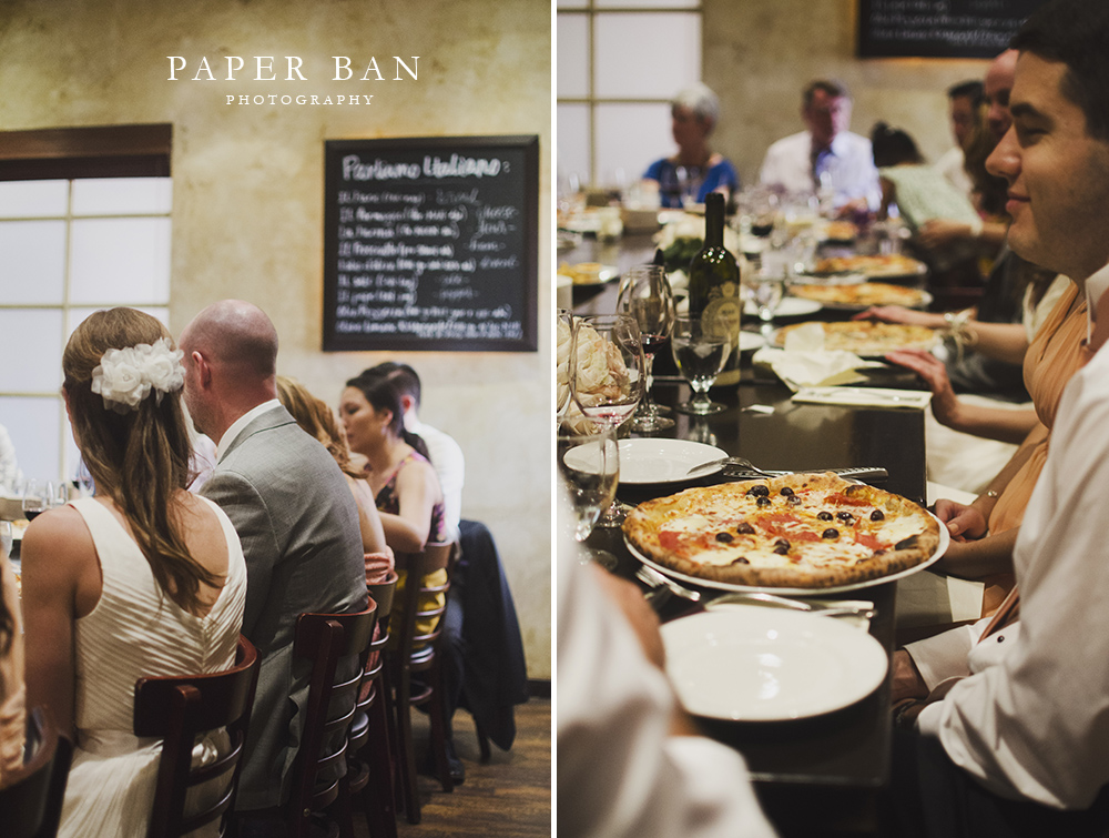 The reception was taken a couple of blocks down, in a cozy pizzaria called Olio. I felt like I was seriously in Italy in that restaurant! And just like the old saying, ‘a family that eats together, stays together,’ all the guests sat together in one big table, enjoying each other’s company in celebration of the new family that has been formed.