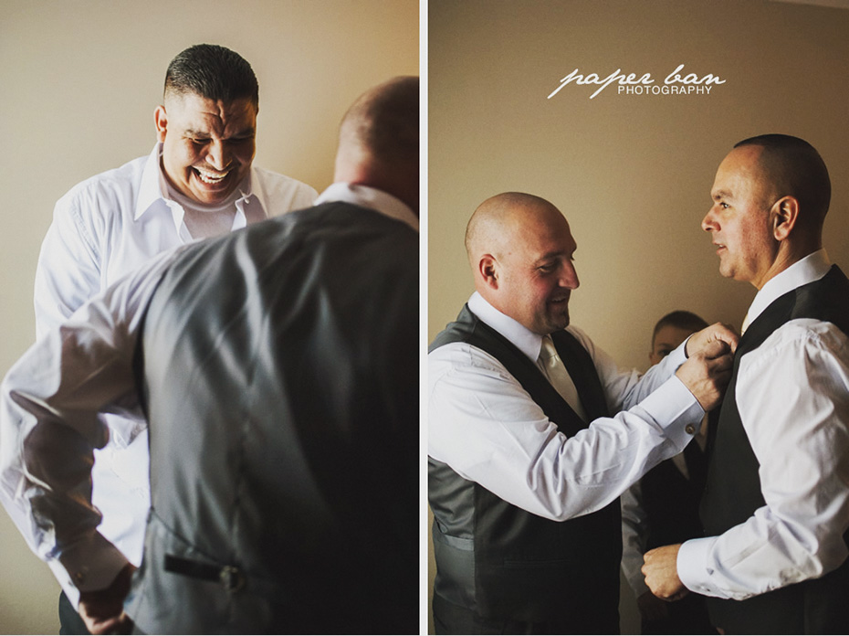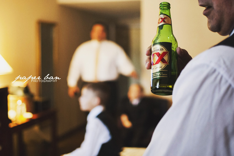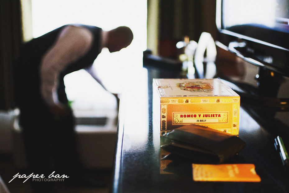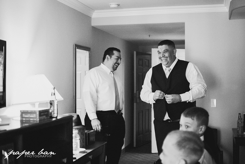 When Hilda opened her hotel room door, she was as calm as a butterfly. She had already gotten her hair done and was sorting out the guest table name cards for the reception. When Luis opened his hotel room door, he was a bit less calm. But that didn’t stop the guys from watching a bit of sports.