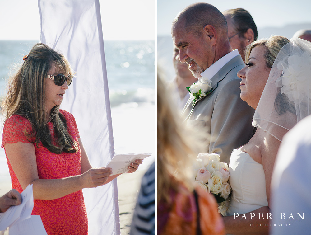 With their intimate guest lists, most who’ve traveled from all over the west coast, we made our way to Pacific Palisades Beach for Jen and Jim’s ceremony. It was such a beautiful ceremony, too. The waves swept in and out in front of the party as their wedding officiant, a long-time friend who became an officiant just for their wedding, unionized the couple. There was so much love that surrounded this couple.