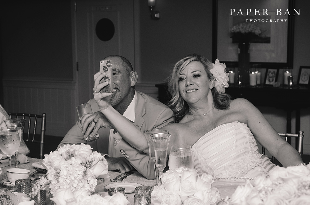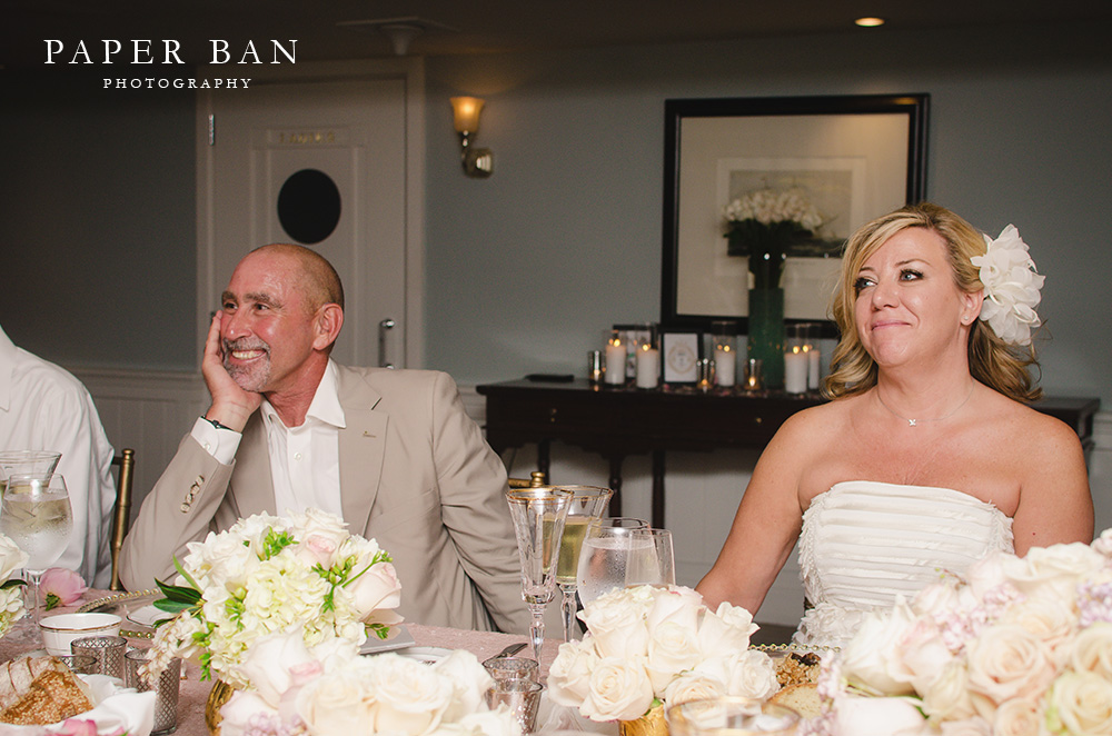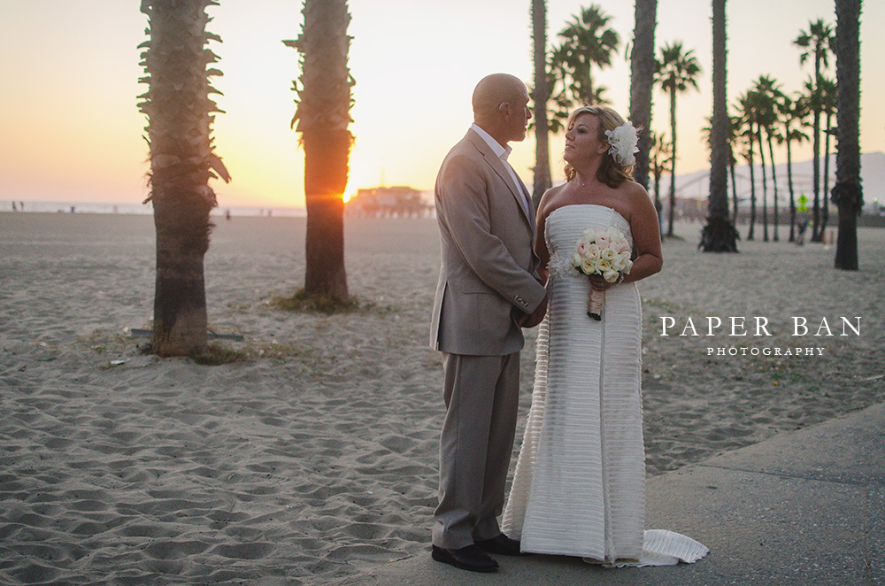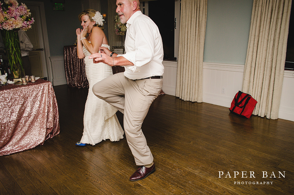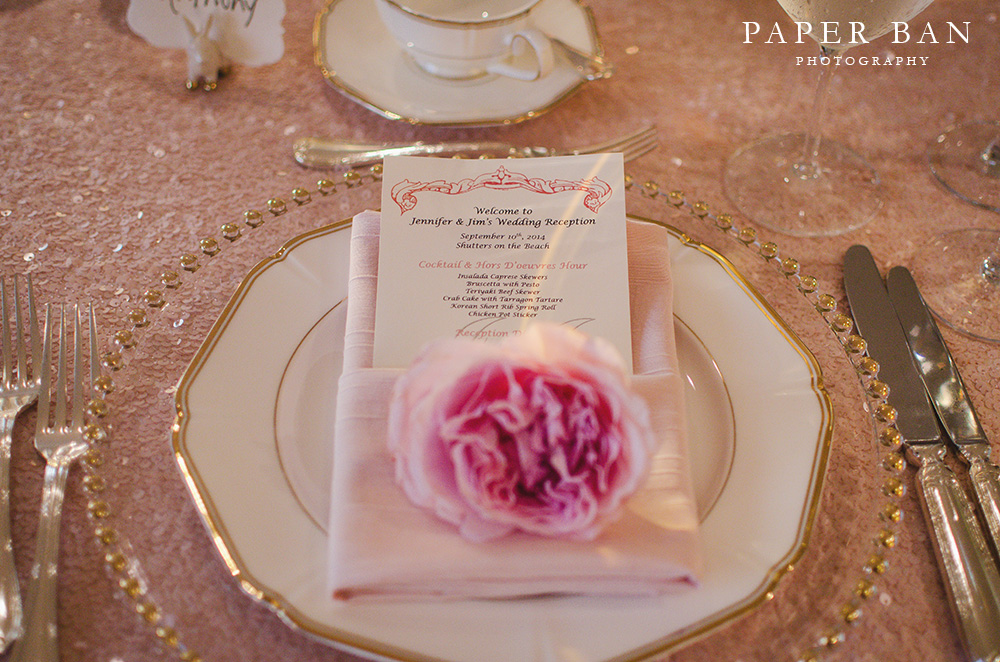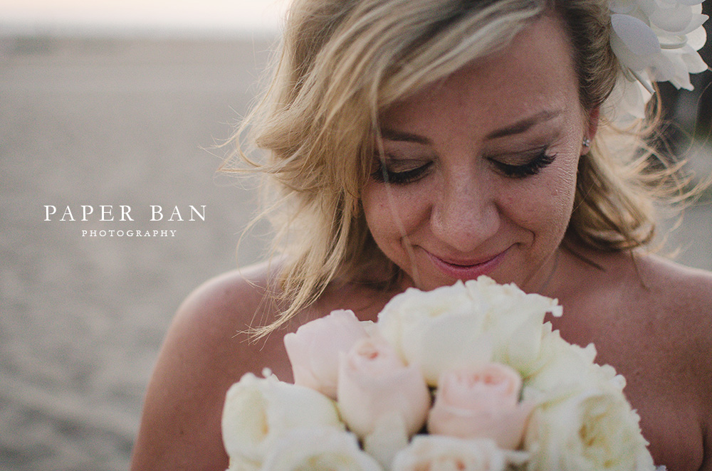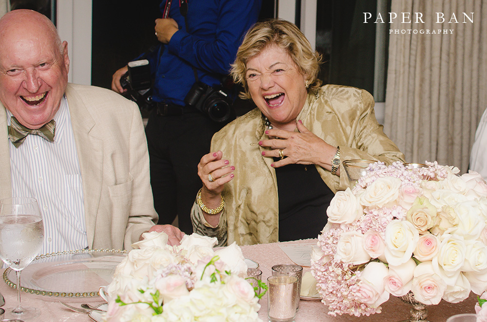 For their reception, we came back to Shutters on the Beach to a room that just overlooks the beach at sunset. It was a spectacular view. The room was cozy and completely decked out in pink and white floral arrangements. Everyone was all in smiles, especially on the dance floor!