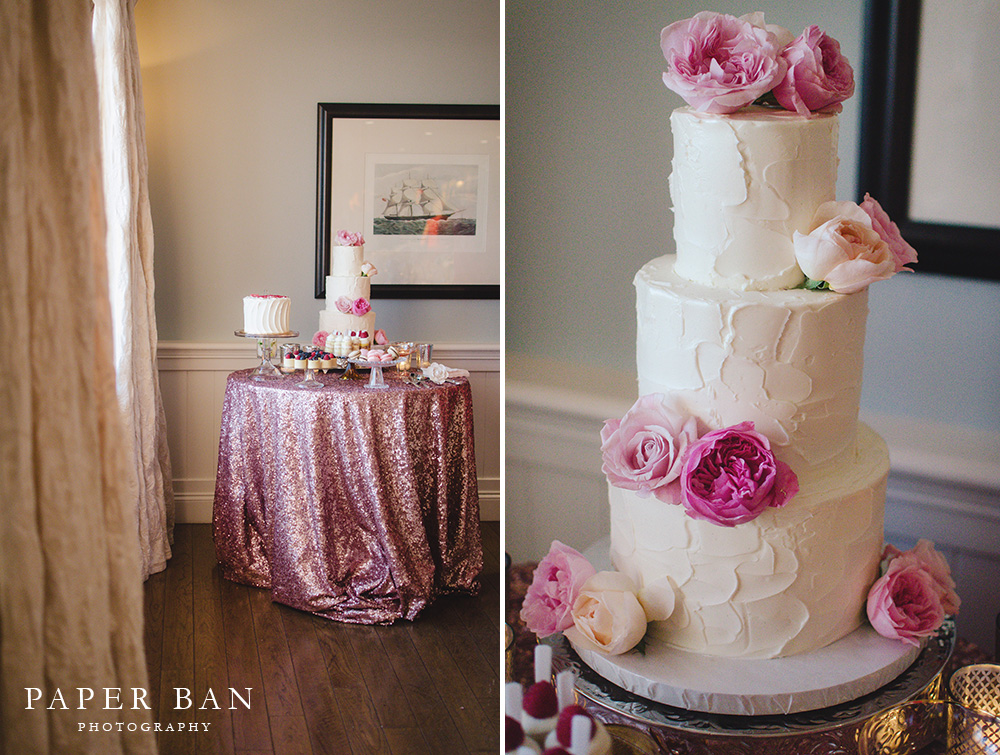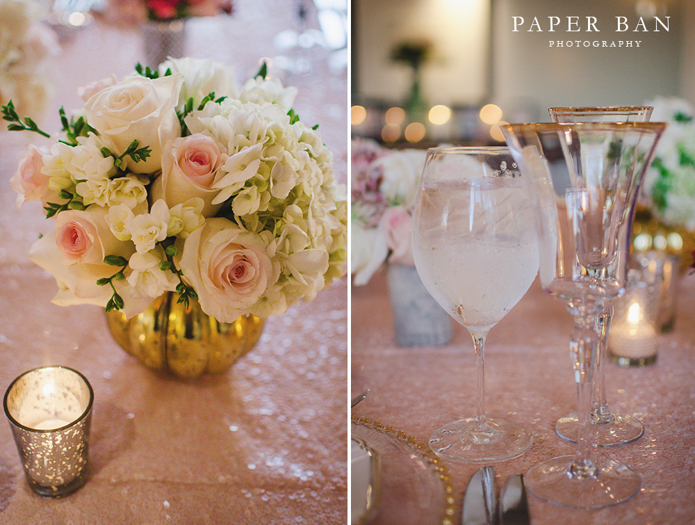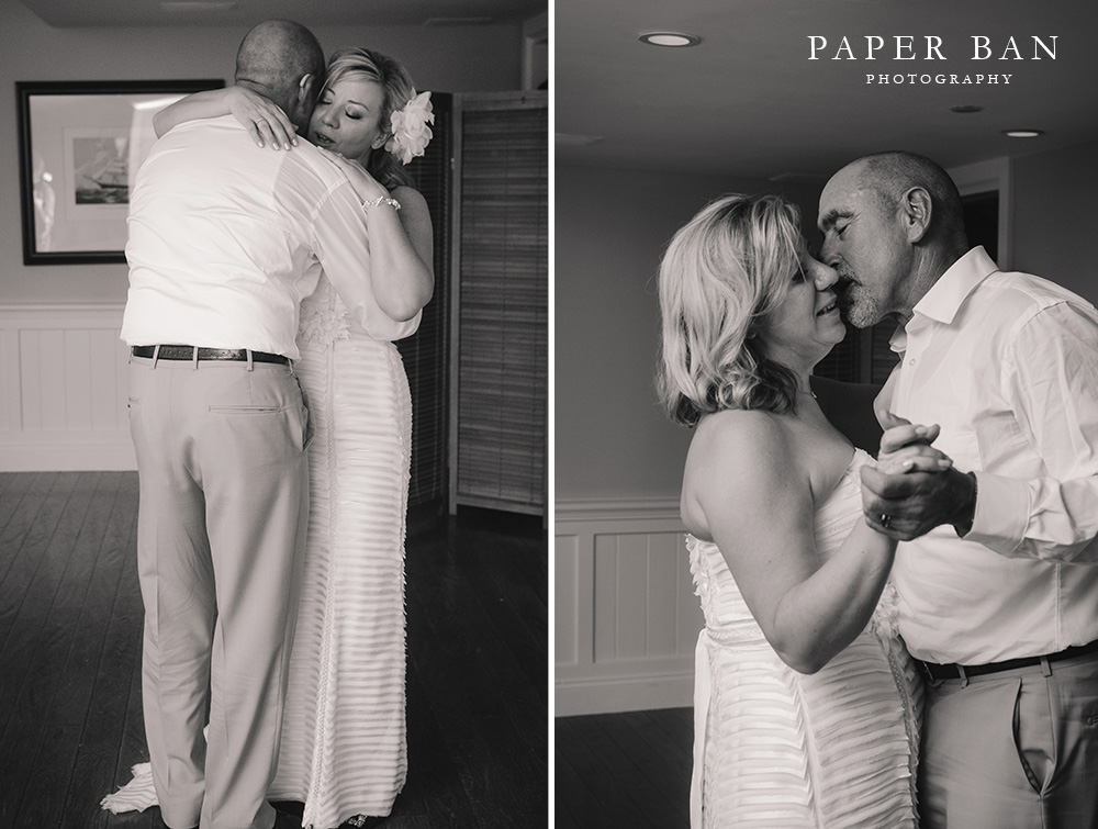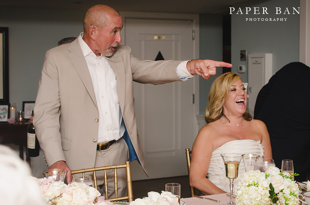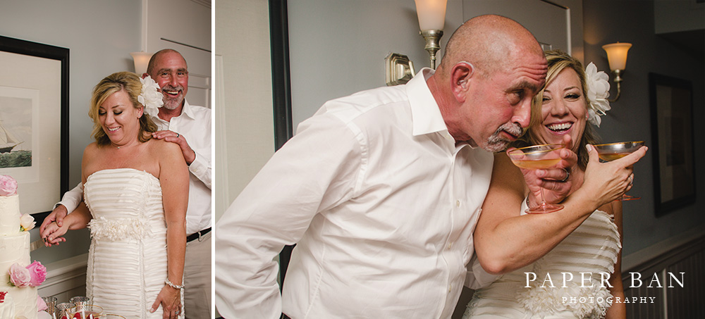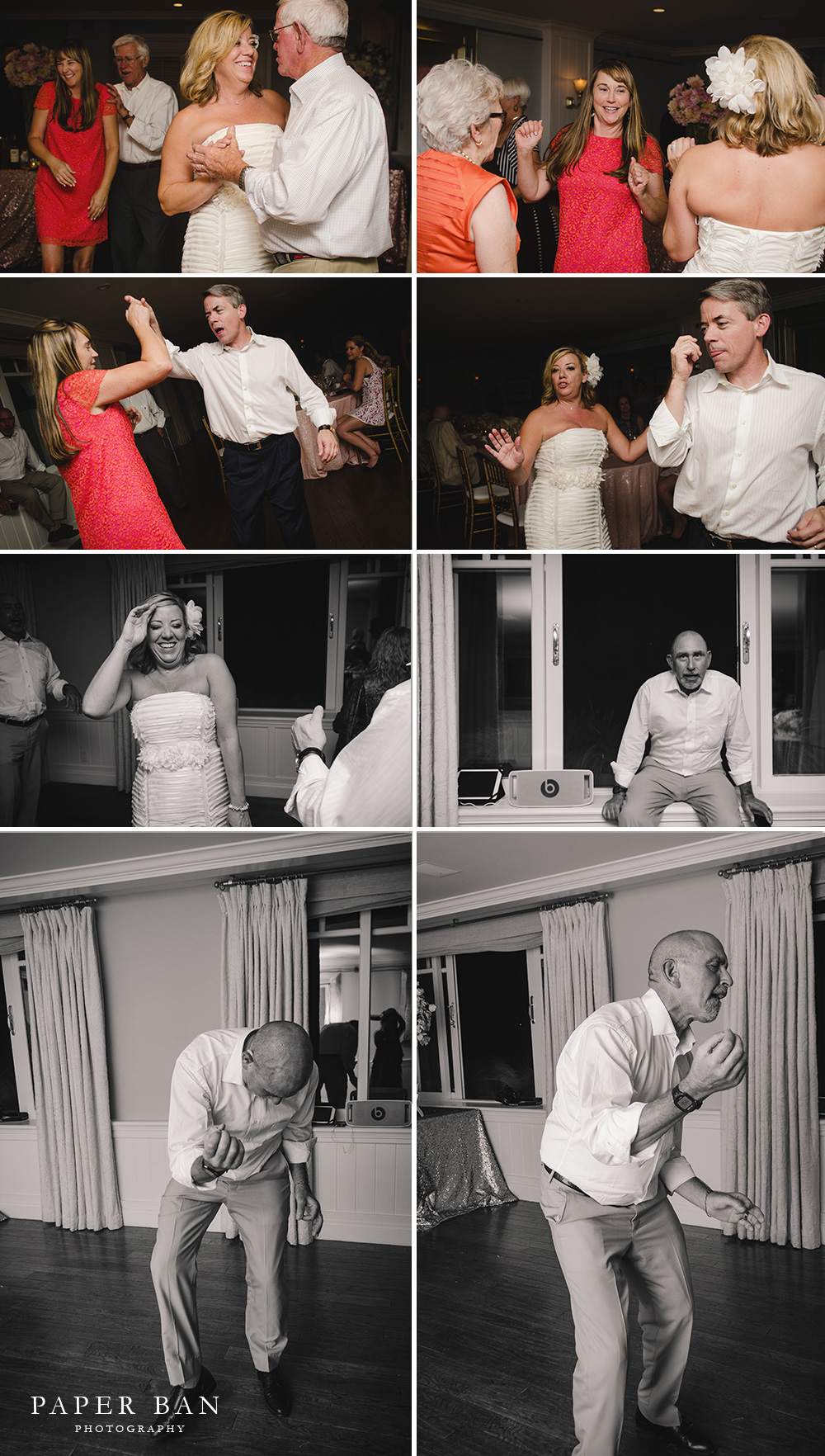 For their reception, we came back to Shutters on the Beach to a room that just overlooks the beach at sunset. It was a spectacular view. The room was cozy and completely decked out in pink and white floral arrangements. Everyone was all in smiles, especially on the dance floor!
