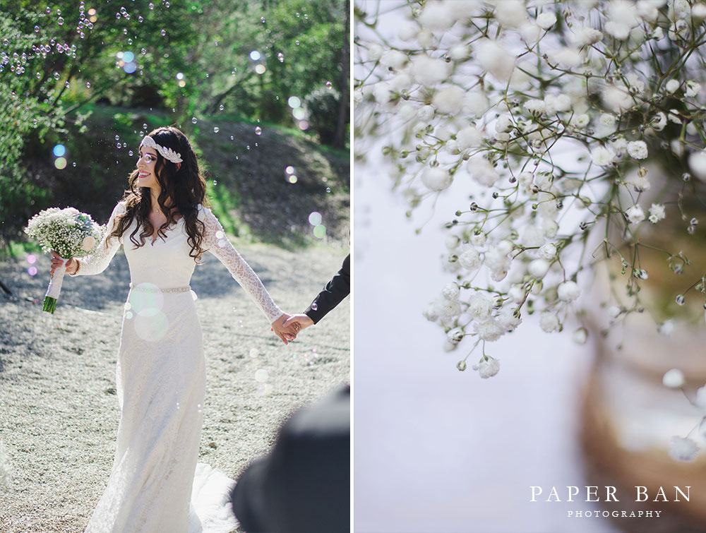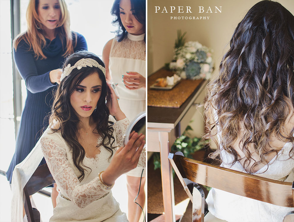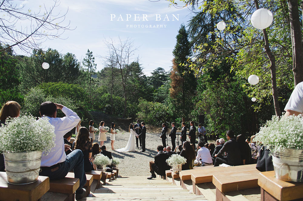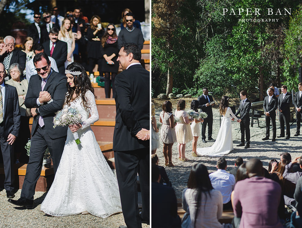 A few weeks ago, Mark and Marisol celebrated their beautiful and intimate wedding all over Los Angeles. The celebration began on a bright and sunny California winter morning in Beverly Hills’ Franklin Canyon Park where the bride and groom got ready for the day ahead. Marisol looked absolutely gorgeous as her bridesmaids helped her into her wedding dress, and even more beautiful as she walked down the aisle of the amphitheater with her father.