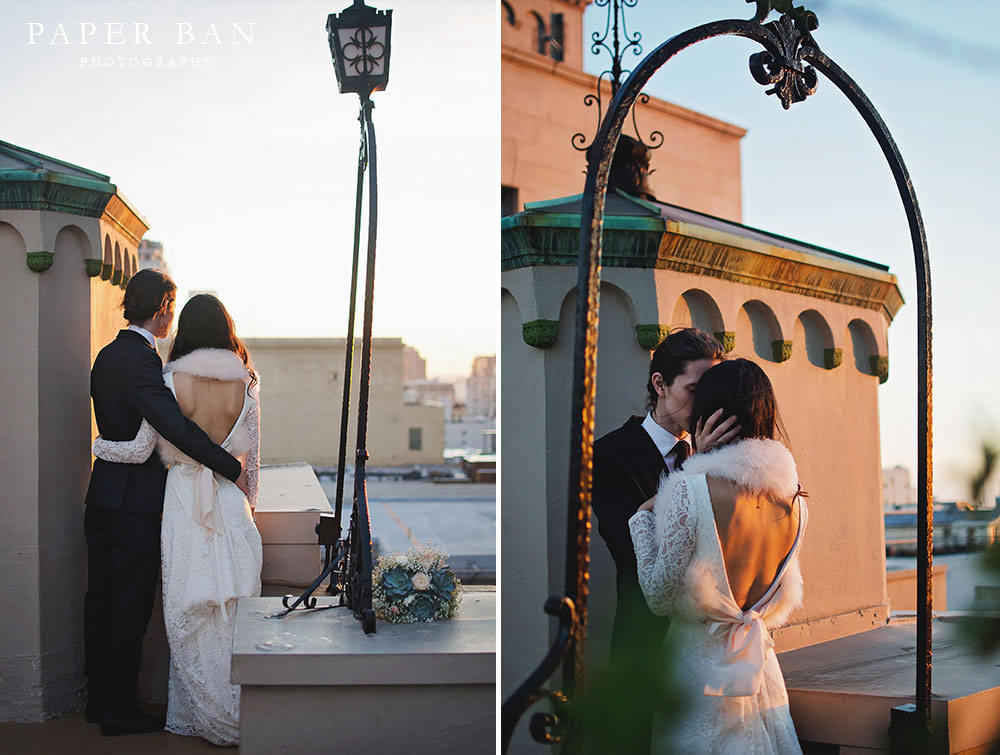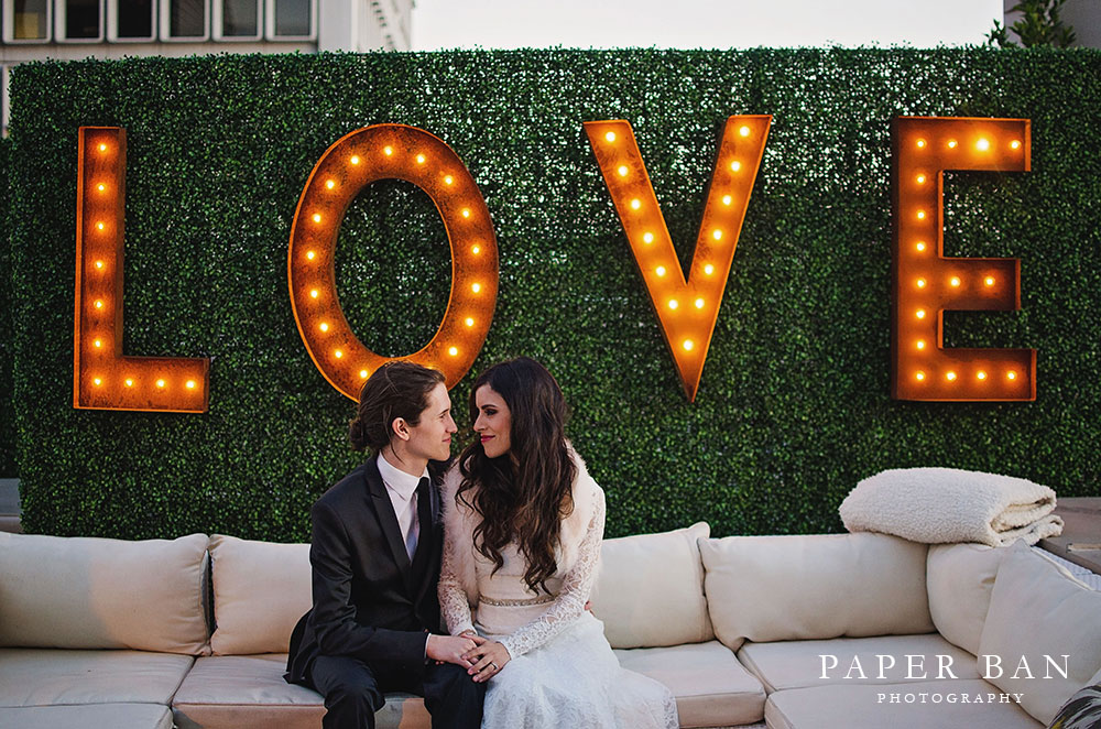 Everyone gathered back together for the reception held at the rooftop of The Oviatt in Downtown Los Angeles. Oh my, this historic building is so beautiful, and going up to the rooftop felt like being transported to a different era. The decor had the gorgeous 1920’s feel of the Art Deco time period. I loved it! And the rooftop! So pretty! Being surrounded by the surrounding skyscrapers of DTLA was magical.